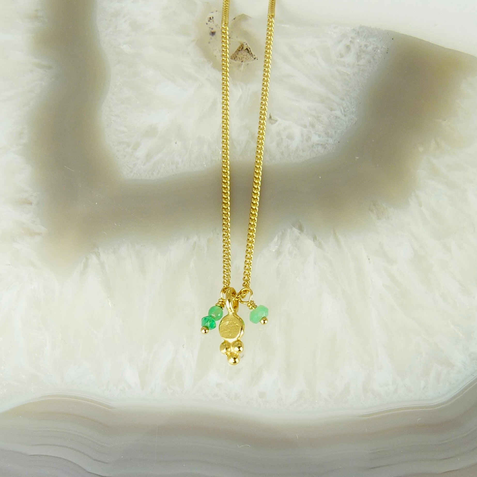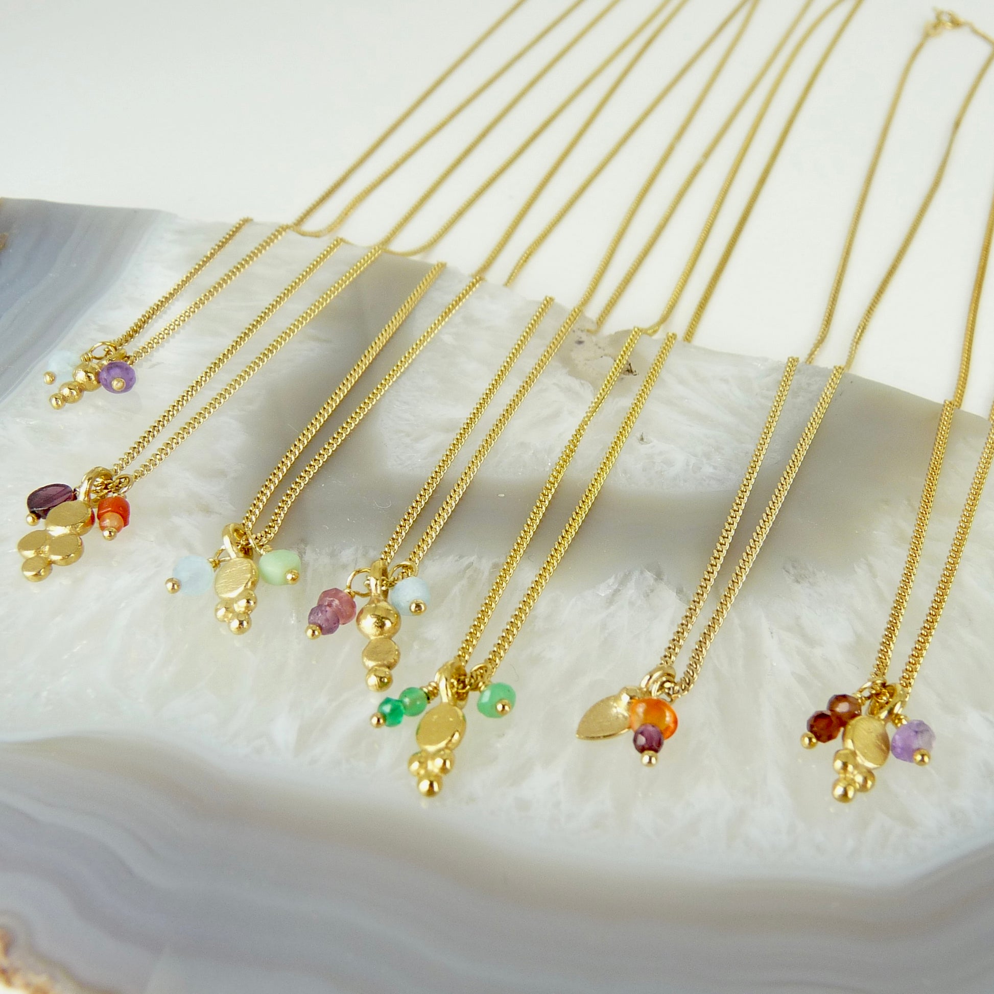 Delicate Araminta charm necklace, featuring a choice of gemstone and looped onto a diamond curb chain