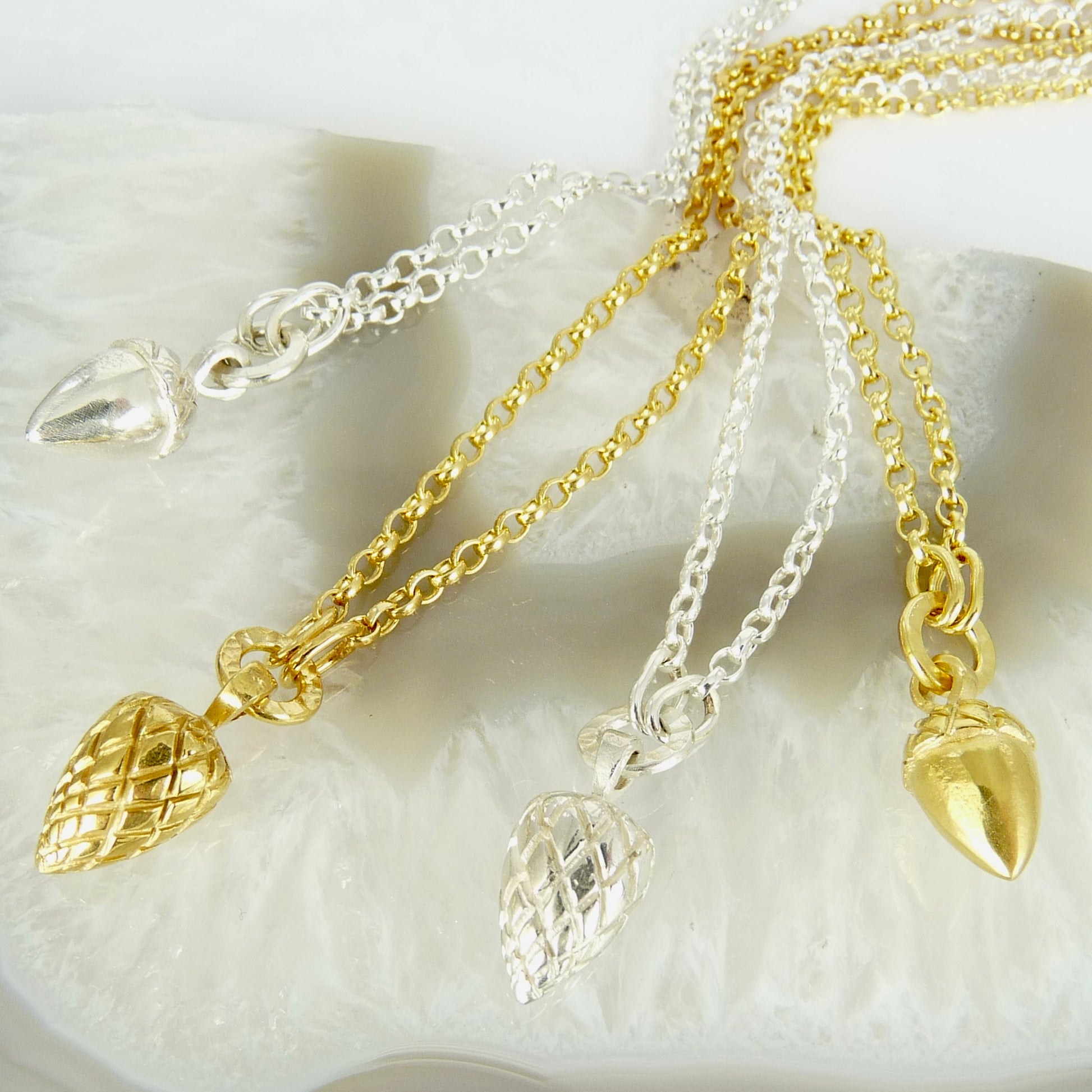 Part of our new Etruscan inspired collection are our pine cone and acorn pendant necklaces