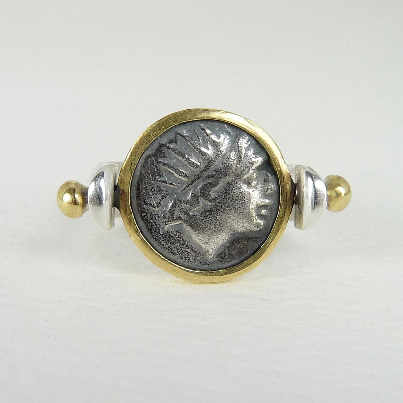 This ring is a replica coin moulded from the original - Silver Drachm 167-88BC