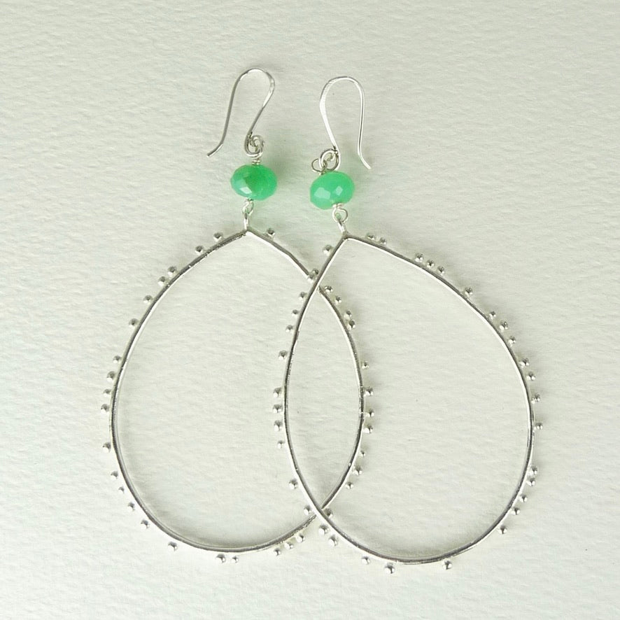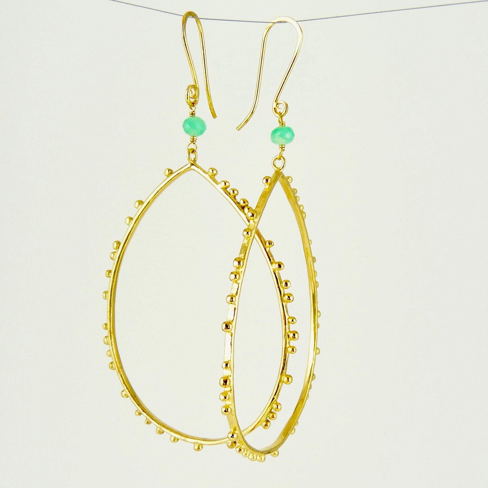 Granulation Drop Shape Earrings, made in sterling silver or 18ct gold and semi precious gemstones