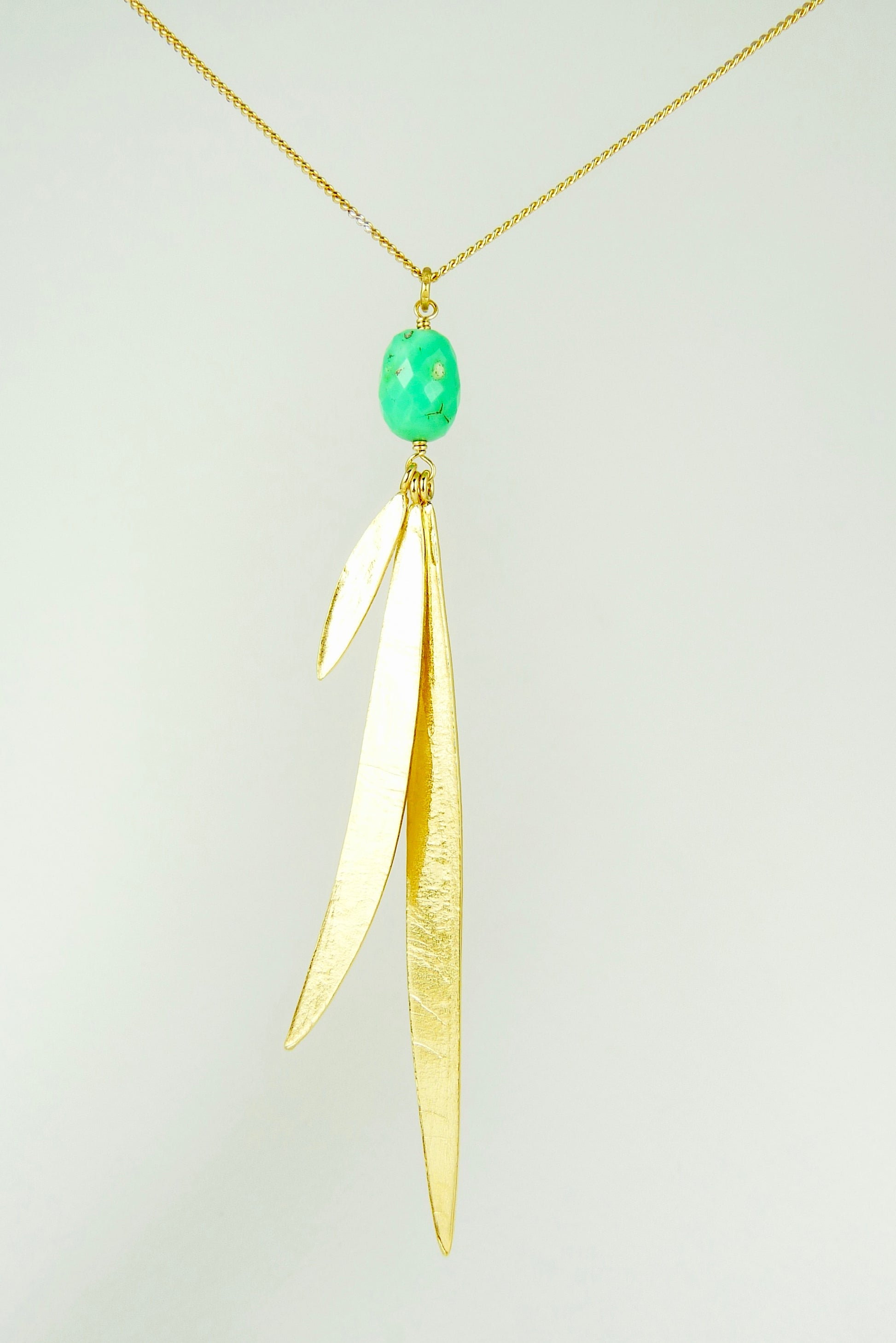 The hand cut and paper pressed leaves are long and slim and have great movement when worn