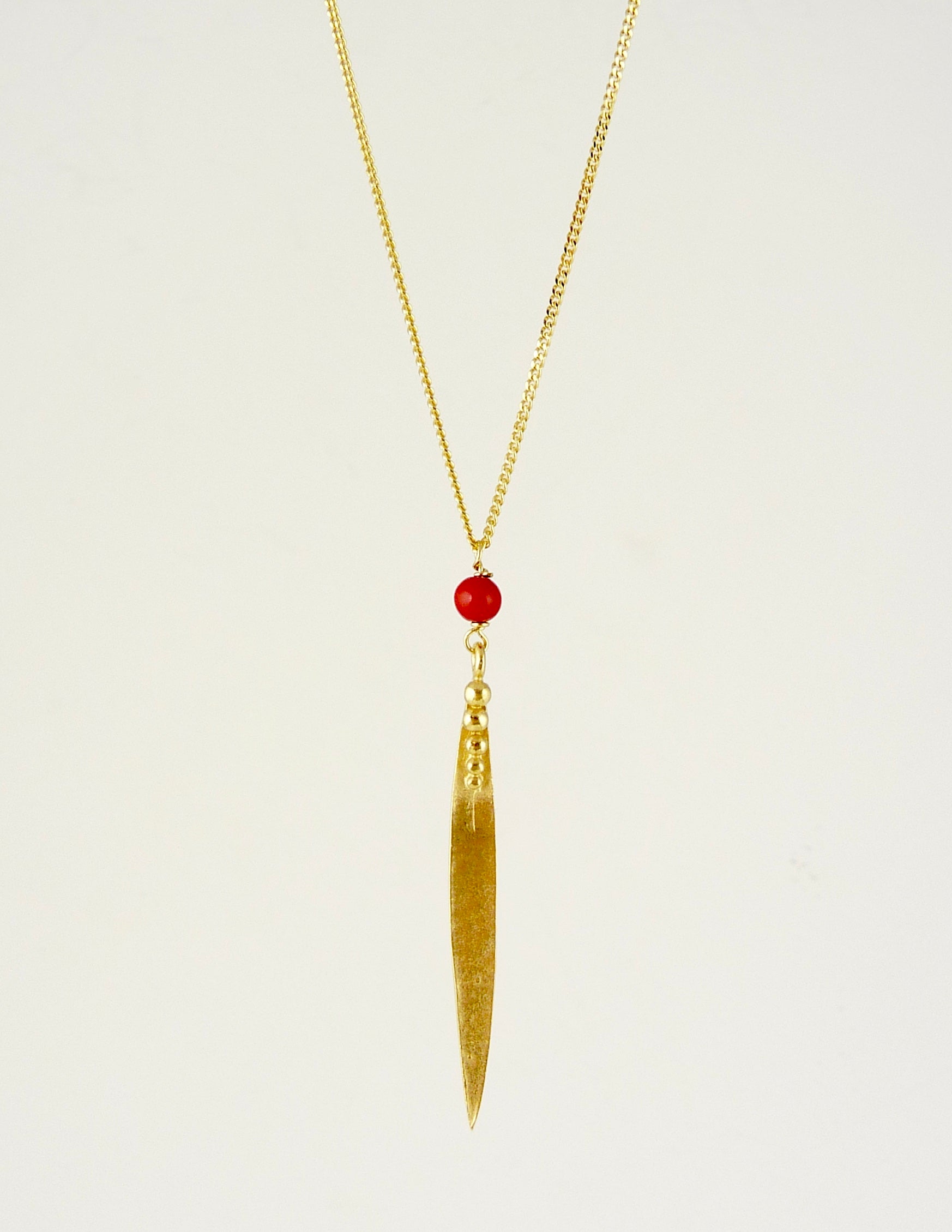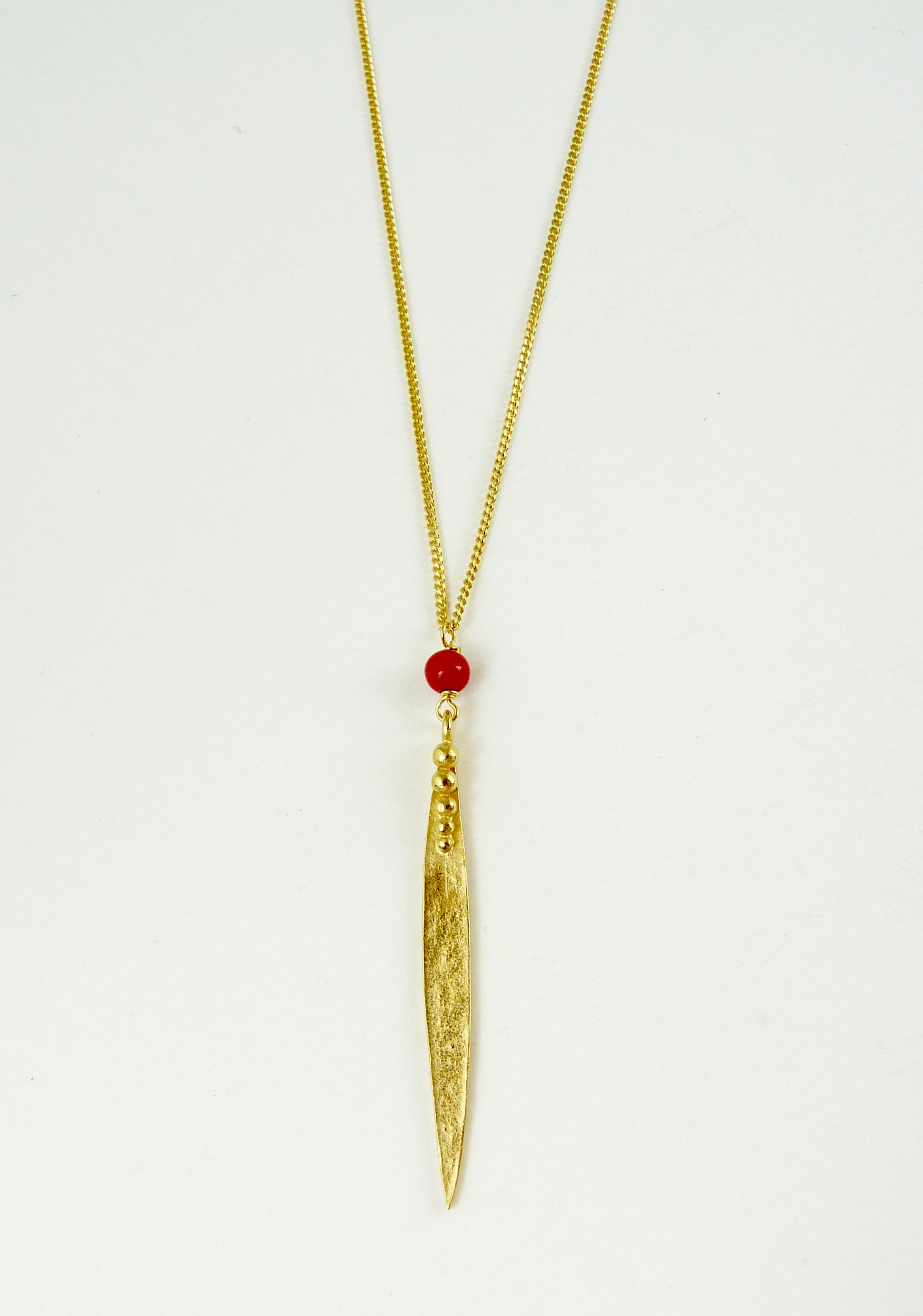 She is a slinky long leaf with delicate graduating granules and red coral bead