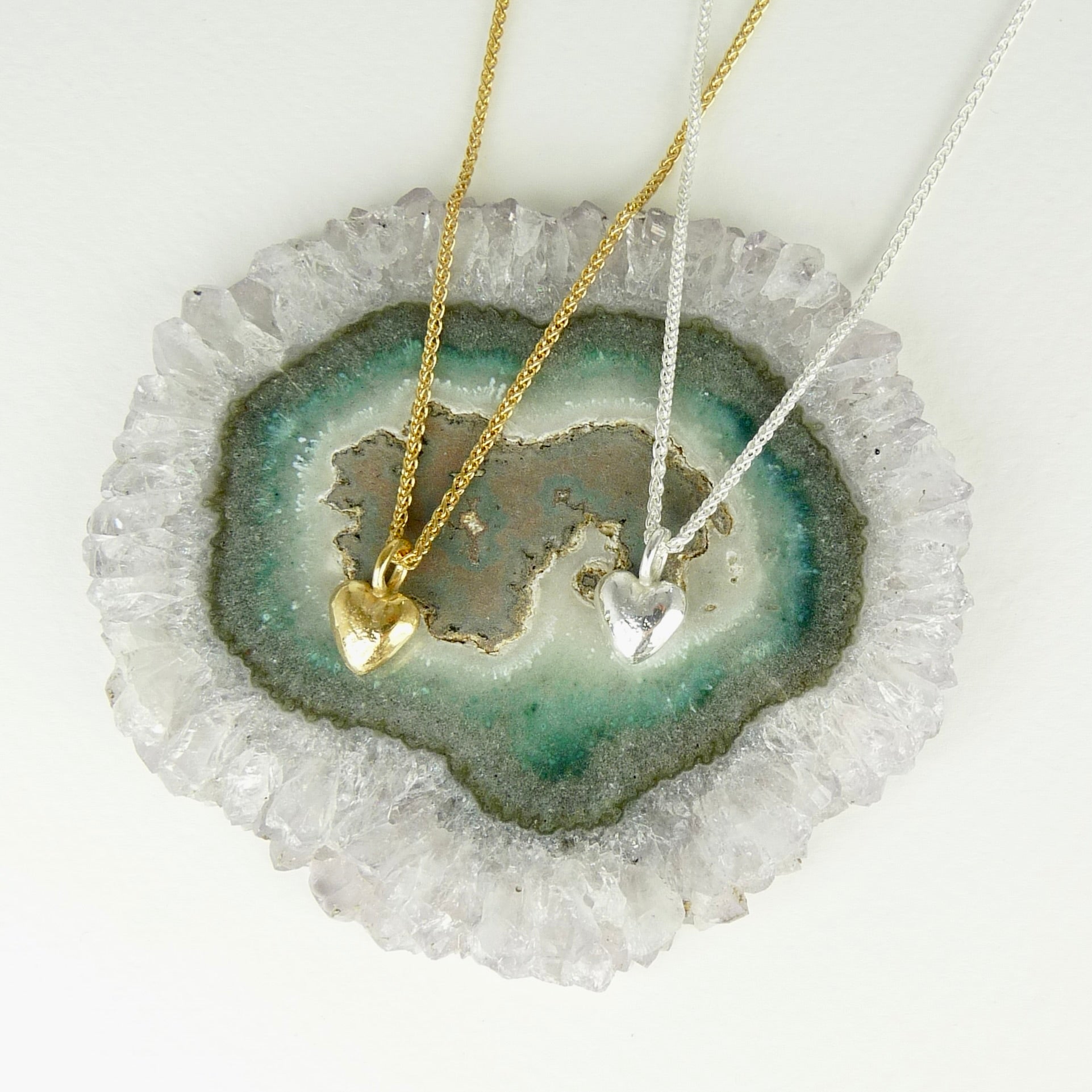 Made using traditional jewellery skills, melting metal into a heart shape that has been carved in charcoal