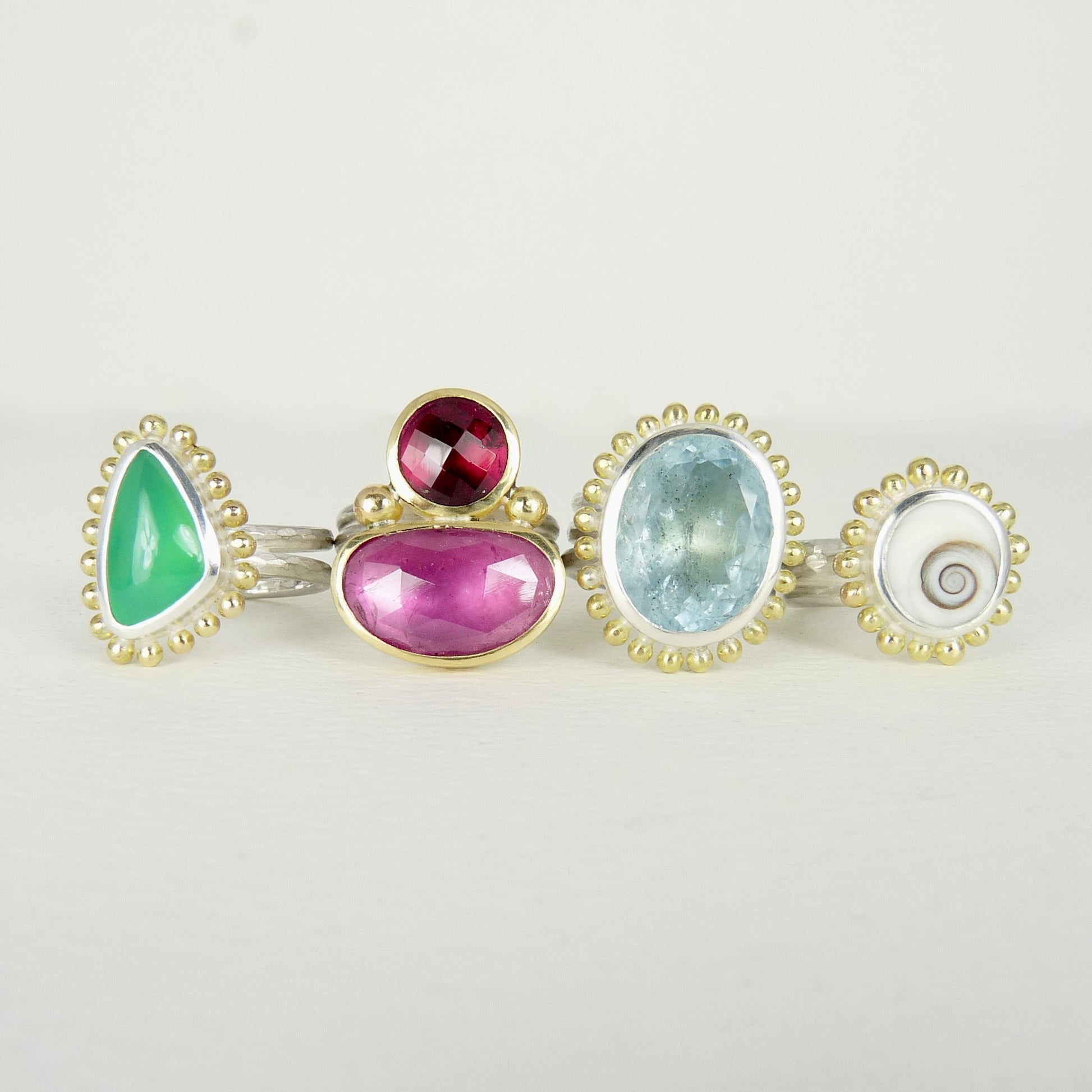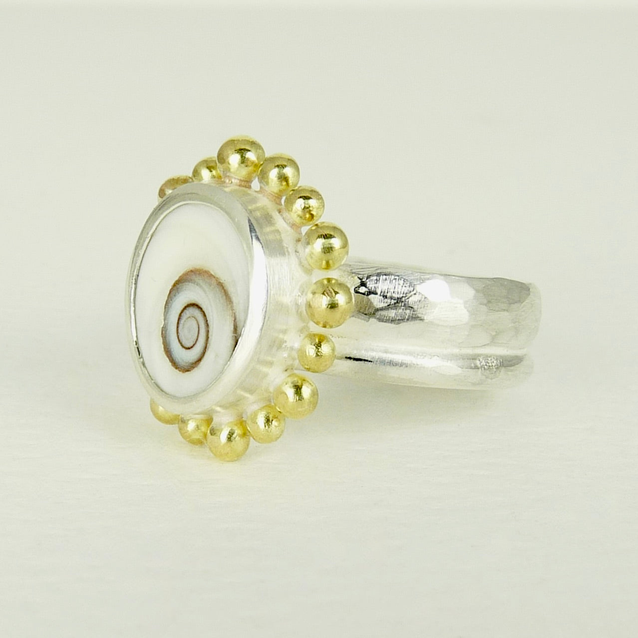 In last photo the ring is sitting with a ring Julia made 30 years using the same shell, something she has always loved and used over the years