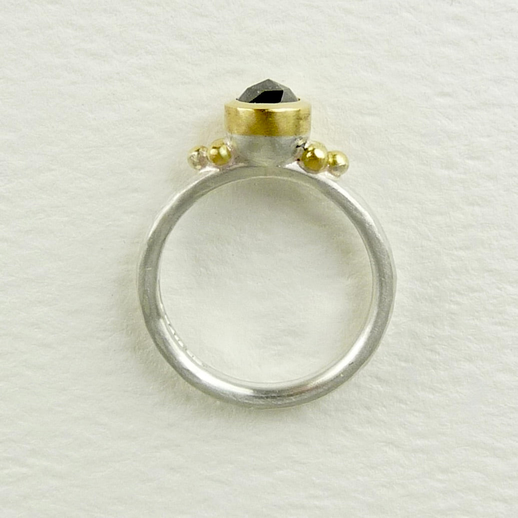 A stunning salt and pepper rose cut diamond set in 18ct gold, 18ct granules and a sterling silver band