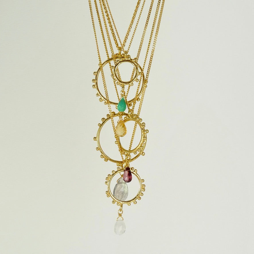Choose from 18ct gold plate or silver, which gemstone you would like and which length chain